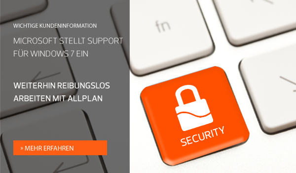 Ein Upgrade auf Windows 10 – meist sogar kostenfrei möglich – wird daher dringend empfohlen. Sind auch Sie von einer Aktualisierung auf Windows 10 betroffen? Dann möchten wir Sie darauf hinweisen, dass Allplan erst ab der Version 2015-1-10 für das Betriebssystem Windows 10 freigegeben ist. Überprüfen Sie deshalb unbedingt im Zuge eines Windows Upgrades auch die Aktualität Ihrer Planungssoftware Allplan. Gehen Sie auf Nummer sicher, vermeiden Sie Sicherheitslücken.