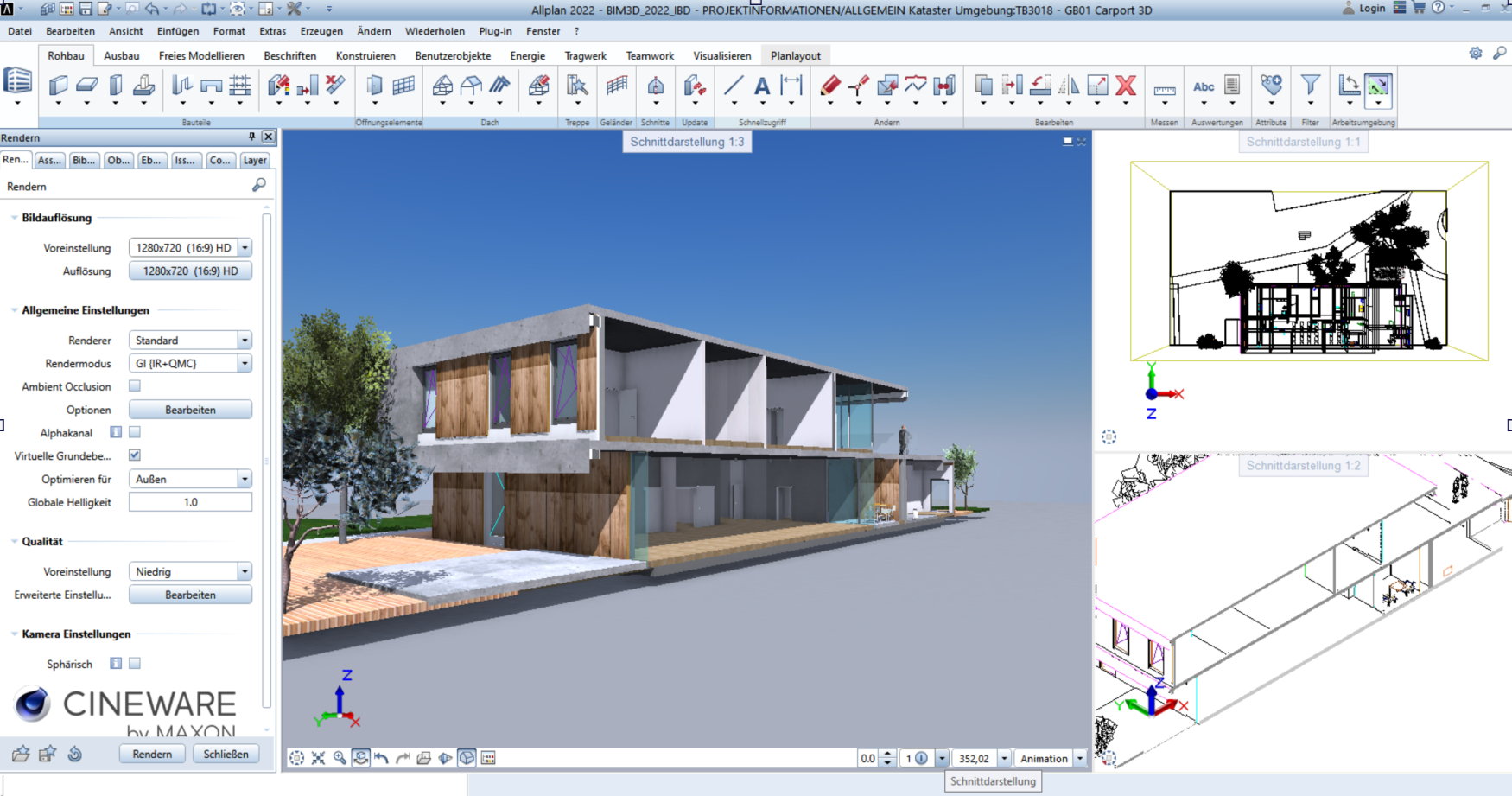 Anforderung : Für Broschüre ein Bild – Schnitt aus Gebäudemodell- rendern in Allplan 300 dpi !