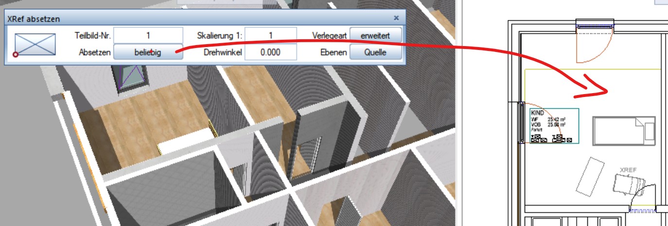 2. Mit Absetzen beliebig kann das XREF auf ein anderes Zimmer abgesetzt werden: