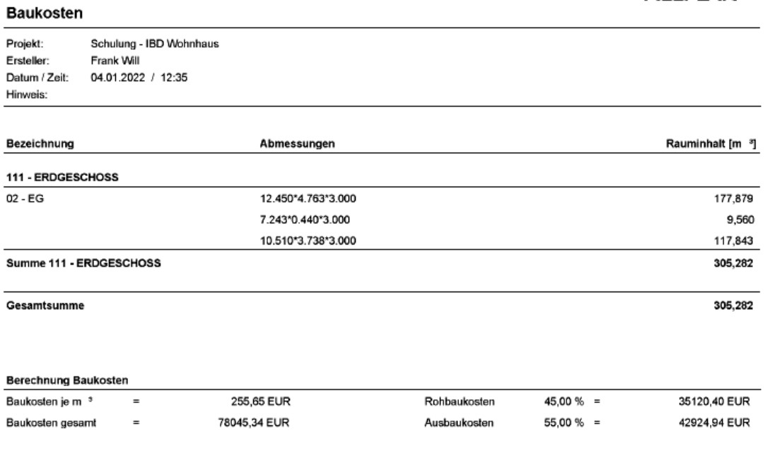Nun der Baukosten.rdlc funktioniert über die Geschosse denen ich BRI , BGF Preise hinterlegen kann. Also nicht auf Positionsebene, (z.B Wand ), das macht z.B. Design2Cost.