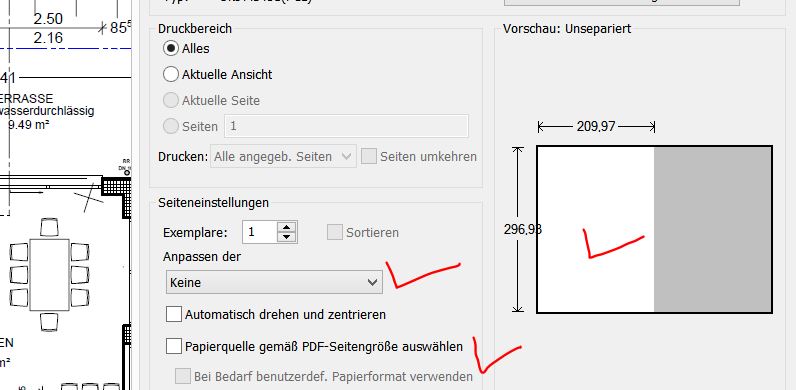 Beim PDF-Export kann das Plan-Format über nachfolgende Einstellung automatisch angepasst werden.