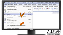 - Klicken Sie auf das Allplan Symbol und dann auf Öffnen…