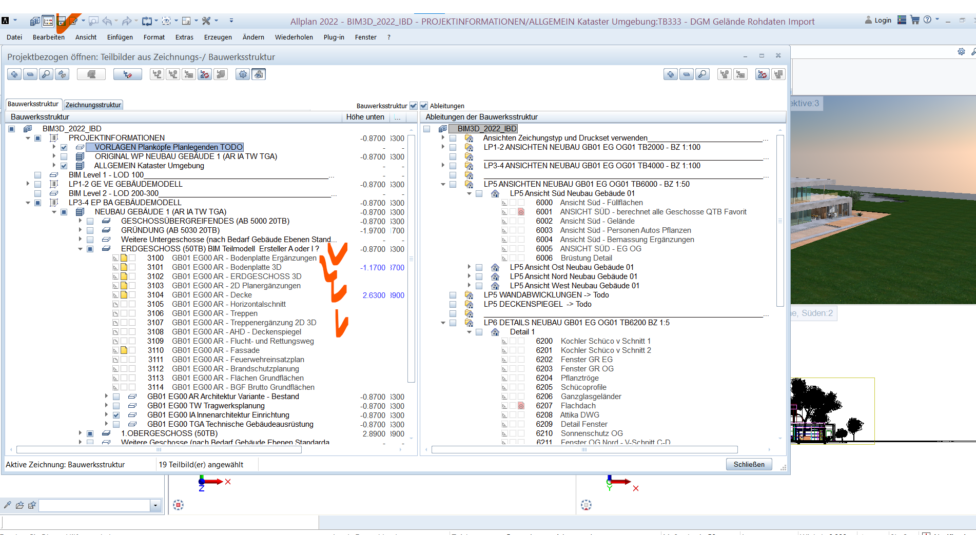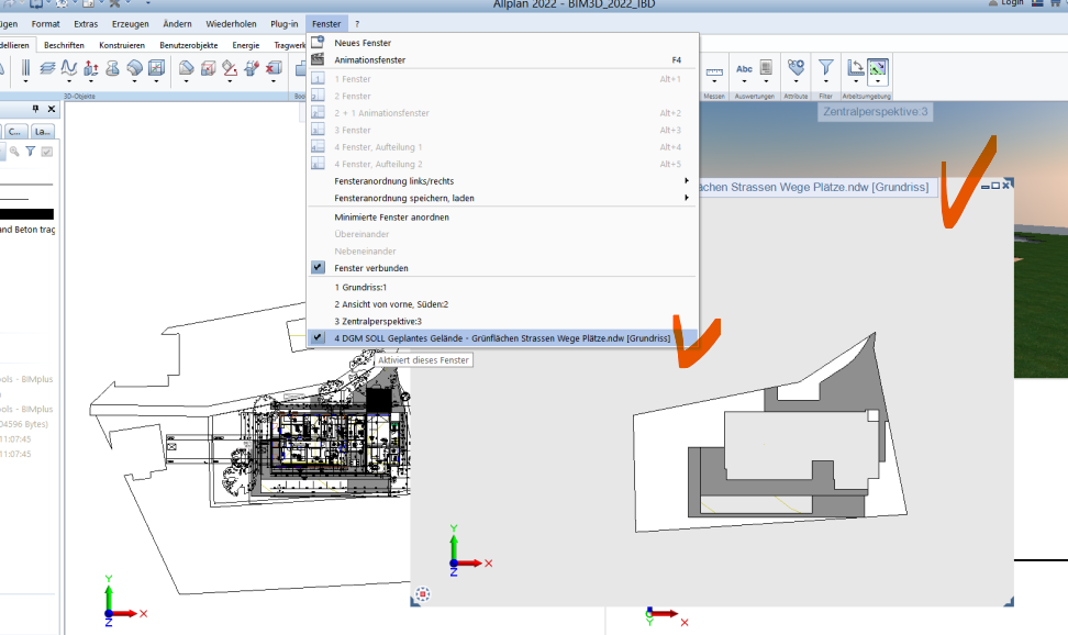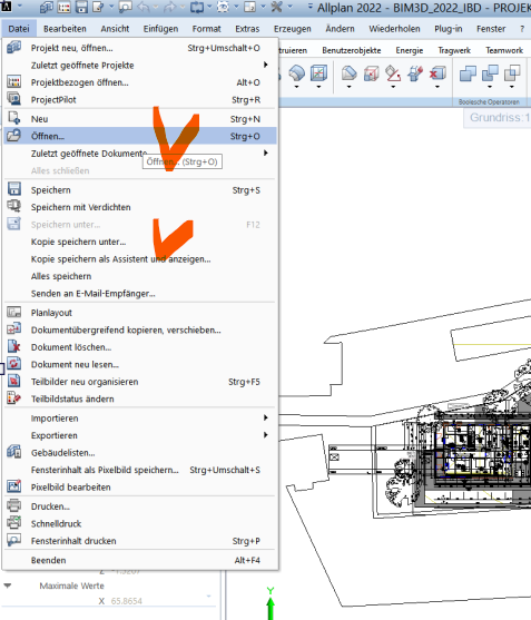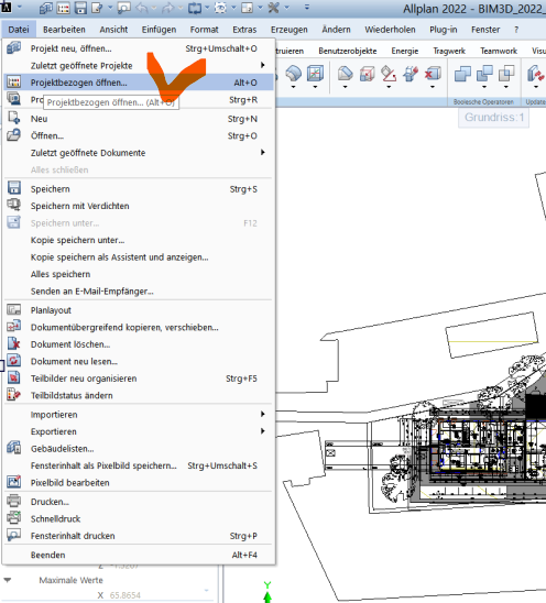 Im Normalfall arbeitet man mit ALLPLAN in den Bauwerkstruktur, diese öffnet man mit projektbezogen öffnen: