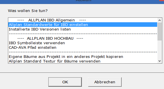 Assistent IBD Planungsdaten Umbau: Allplan Standardwerte einstellen