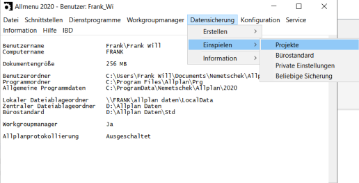 Allplan 2014 Workgroup Manager: Check der Allmenü Datenpfade