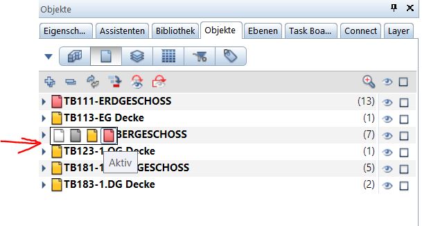 - Über Objektpalette Teilbilder wechseln und im Hintergrund offen lassen:
