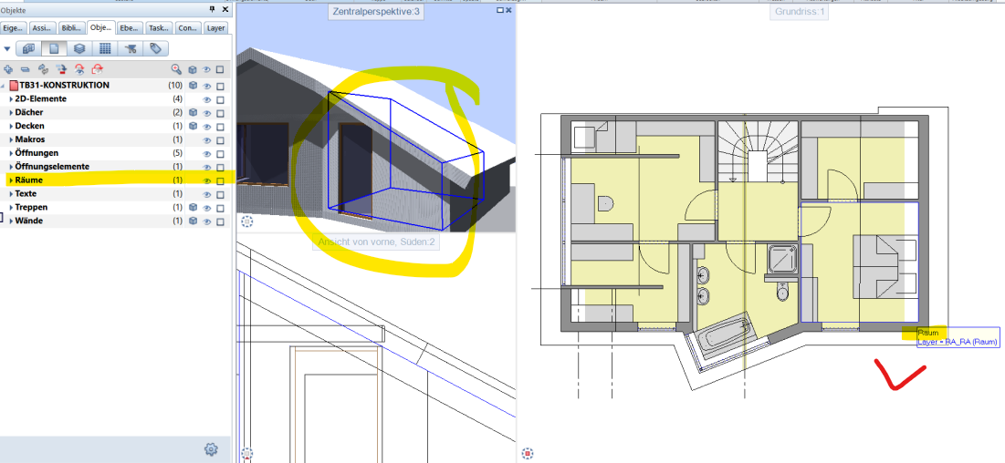2. Einen Raum im Dach erzeugen. Anbindung an das Dach erfolgt automatisch: