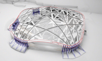 der Ingenieure. Um anspruchsvolle Planungsergebnisse mit einem Höchstmaß an Qualität zu realisieren, vertraut Walt + Galmarini seit Jahren auf die BIM-Lösung Allplan Ingenieurbau. Aus den einmal in das digitale Gebäudemodell eingepfl egten Planungsdaten leiten die Ingenieure alle relevanten Schnitte, Ansichten und Perspektiven ab. Die Entwurfskontrolle in 3D hat sich auch bei den Planungen zum Elefantenhaus als äußerst praktisch erwiesen: Dank ihr konnten die Schweizer nicht nur mögliche Kollisionen von Bauteilen oder andere Planungsfehler sofort erkennen, sie ermöglichte es auch, komplexe Geometrien ganz leicht zu veranschaulichen. So komplex wie die Geometrie des Elefantenhauses, waren auch die Ansprüche an die Tragwerksplanung und -ausführung. Das Dach des Hauses setzt sich aus vielen netzartig überlagerten Strahlen zusammen und kommt dabei gänzlich ohne Holzstützen oder sonstige abstützende Elemente im Inneren aus. Damit die Konstruktion als Holzschale überhaupt möglich war, musste zuerst ein Gerüst über die komplette Innenlandschaft erstellt werden.