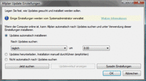 Bei einer Workgroup Installation hat der Sysadm die Möglichkeit, das Update für alle Alllpan Benutzer zur Verfügung zu stellen. Wählt „Updates automatisch installieren“ und klickt anschließend auf „Sysadm Einstellungen“.