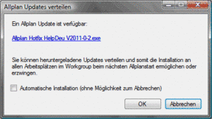 Wie geht ein automatisches Update von Allplan 2011 als Einzelplatz und im Workgroup? Frage : Wie geht ein automatisches Update von Allplan 2011 als Einzelplatz und im Workgroup?